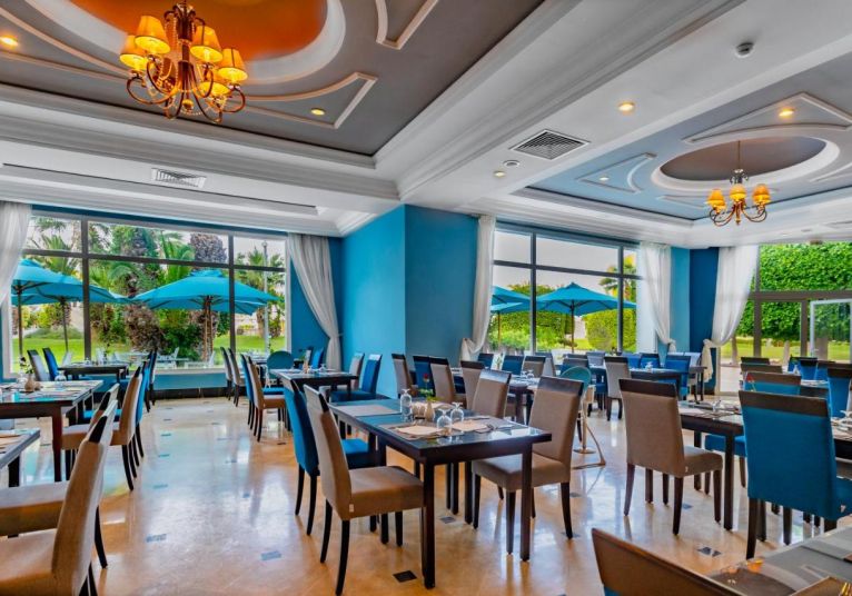 Основен ресторан Le Grenadier, а ла карт ресторант L'Olivier със средиземноморска кухня (платен, работи през летния сезон), а ла карт ресторант Le Laurier с тунизийска кухня (гостите могат да ползват едно безплатно помещение с предварителна резервация), лоби бар El Bey, бар басейн, снек бар, бистро бар La Vague, мавританско кафене, анимация, конферентни зали, сувенирен магазин, СПА център, химическо чистене, външен и вътрешен басейн.