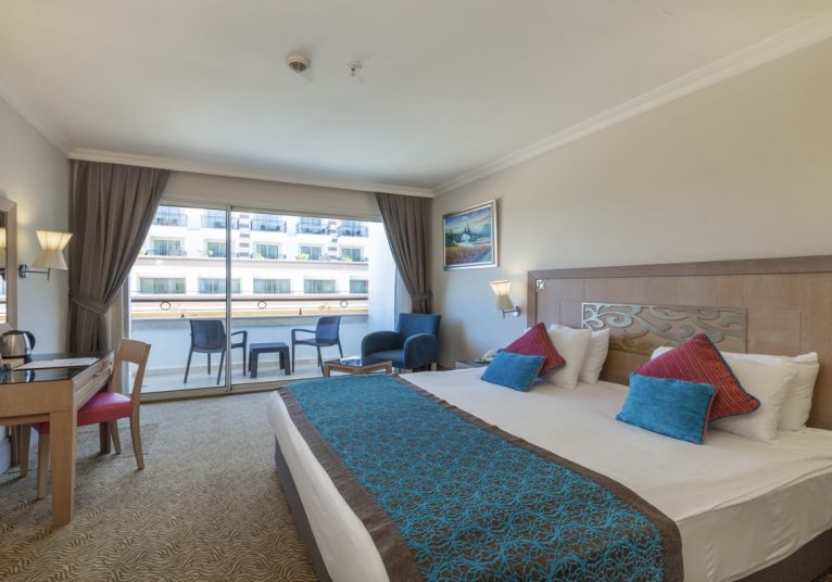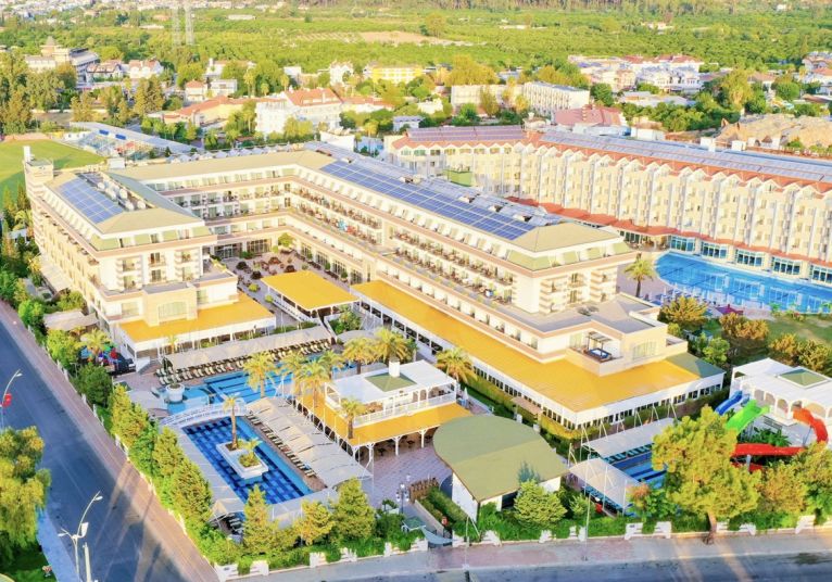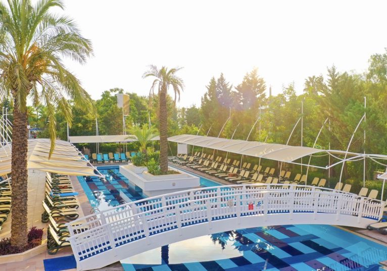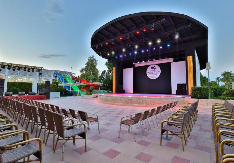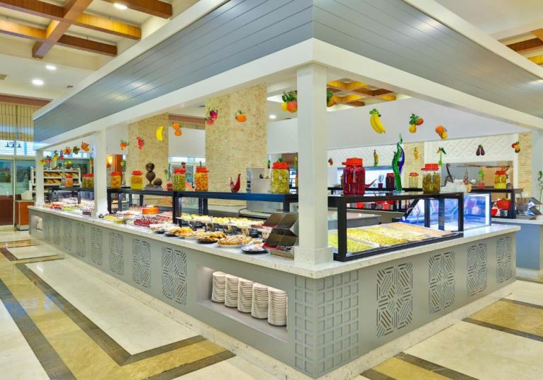 Основен ресторант, а - ла - карт ресторант (с предварителна резервация), 4 бара, 3 открити и 2 закрити басейна, водни пързалки, магазини, СПА център, дискотека, кино, конферентни зали, паркинг. За децата: Детска площадка, мини клуб (4-12 г.), 2 детски басейна – външен и вътрешен, водни пързалки, анимация. Безплатни услуги: Турска баня, сауна, джакузи, фитнес, дартс, тенис на маса, тенис корт (с предварителна резервация), баскетбол, аеробика, водна гимнастика, кино, жива музика, анимация, интернет. Платени услуги: Масаж, фризьор, търговски център, билярд, боулинг, джаги, интернет кафе (с предварителна резервация), видеоигри, химическо чистене, лекар, водни спортове, наем на топки и ракети за тенис, осветление за тенис корта.