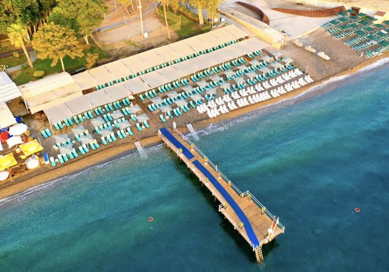 Собствен, чакълест плаж. Чадъри, шезлонги и матраци на плажа и при басейна – безплатно, плажни кърпи – срещу депозит.