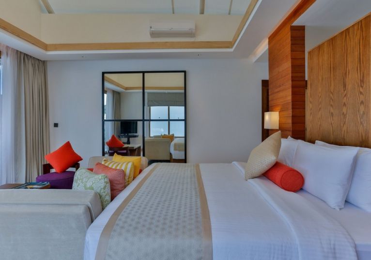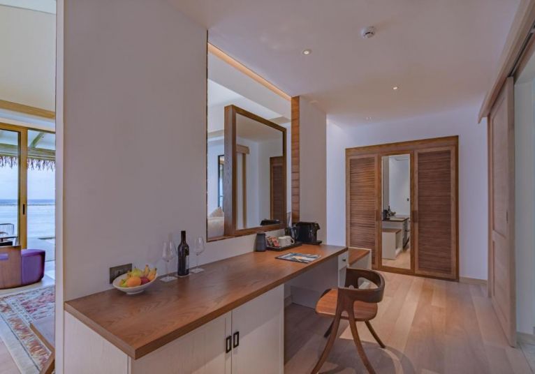 На територията:  Комплексът разполага със СПА център от световна класа и бар, разположен на колове във водата. Насладете се на панорамния изглед към острова, докато хапвате ястия на шведска маса в ресторант Malaafaiy. Предлагащ богата селекция от вина, Nalha Falhul ще ви плени с уединена атмосфера и напитки след хранене.