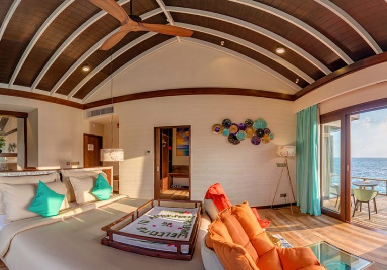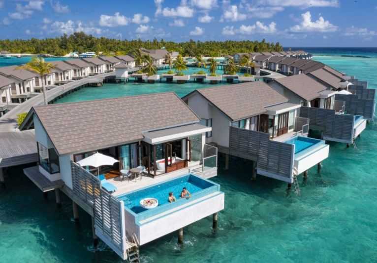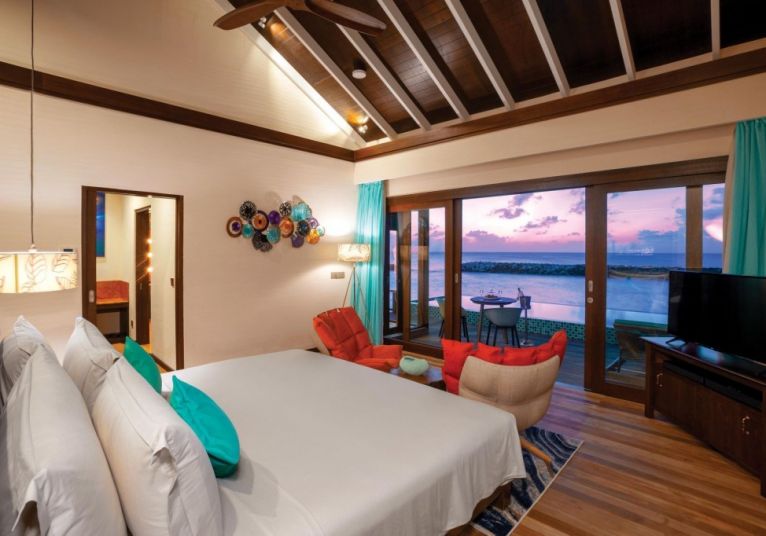 Вълшебните водни вили, идеални за романтично бягство или мечтан меден месец на Малдивите, се простират покрай кристално чиста лагуна. За 2 възрастни и 2 деца или 3 възрастни и 1 дете, с 1 легло King, площ 103 м².