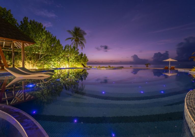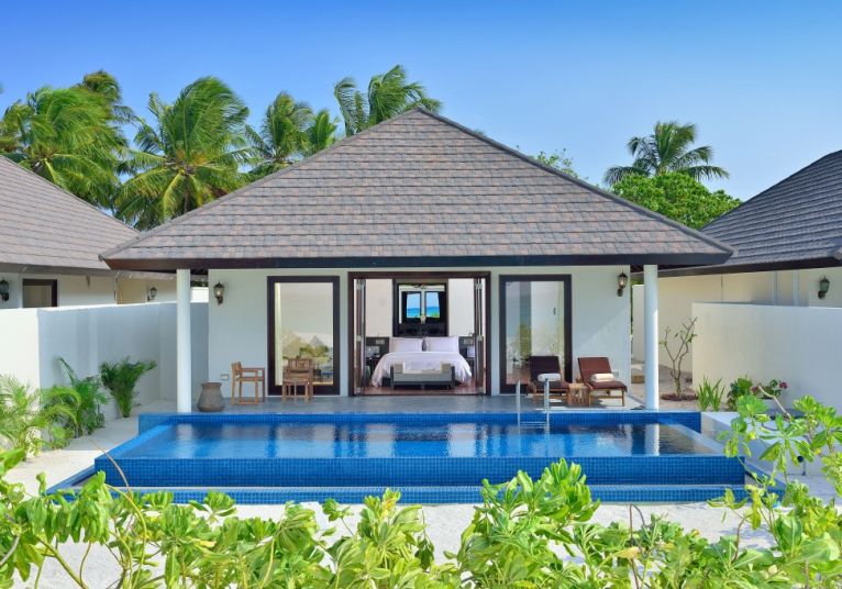 Изживейте перфектната комбинация от островен чар и съвременен комфорт в уединени вили с морска гледка на Малдивите. За 2 възрастни и 2 деца или 3 възрастни и 1 дете, с 1 легло King, площ 146 м², басейн 30 м².