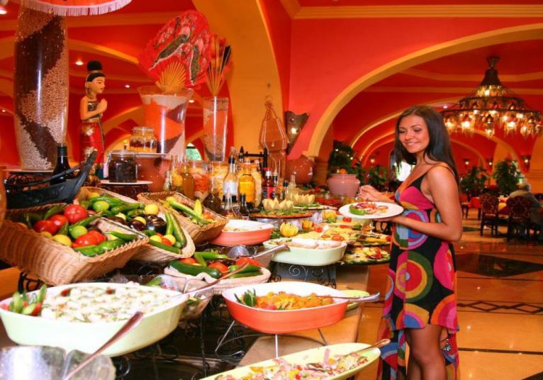 В Domina Coral Bay има 3 ресторанта, които сервират местни и международни ястия. Вечер гостите могат да си поръчат вкусен коктейл в някой от 12-те бара на комплекса. Допълнително хотелът разполага с 8 а-ла-карт ресторанта.