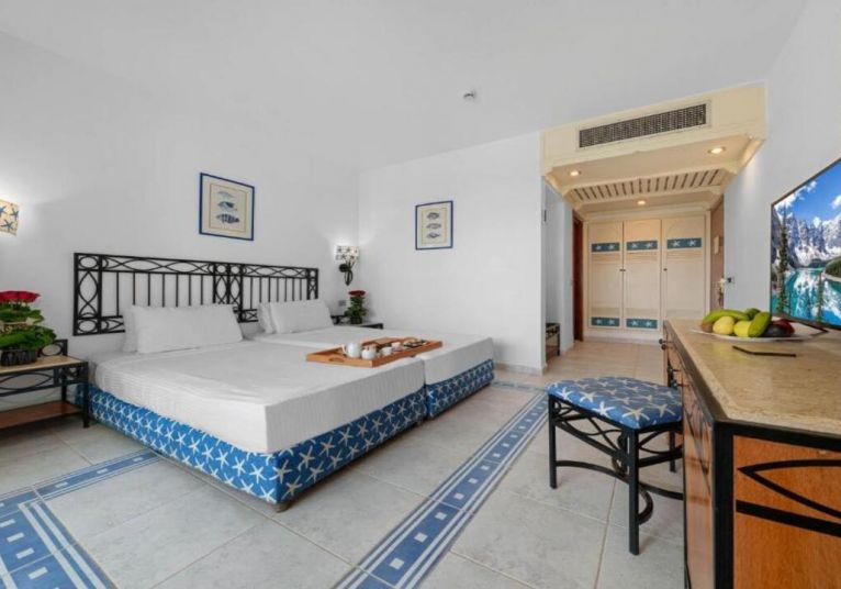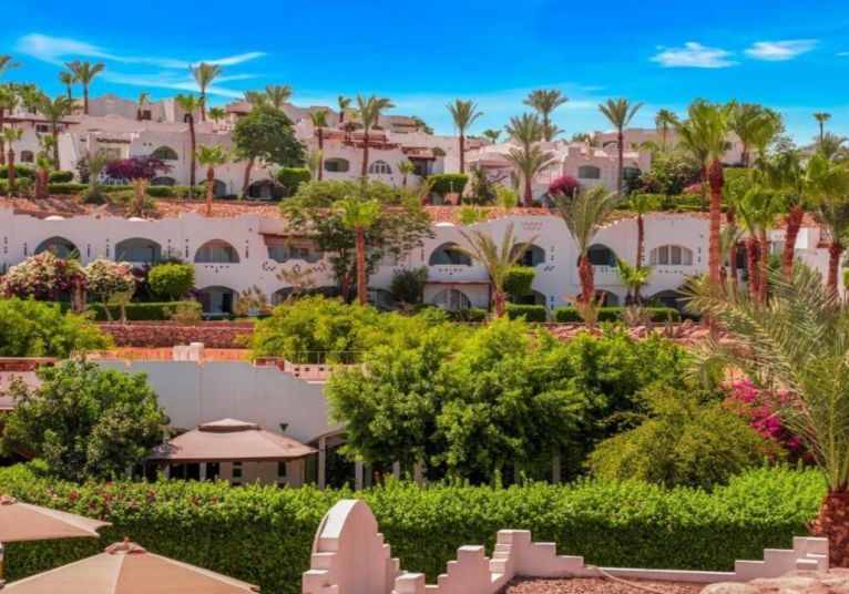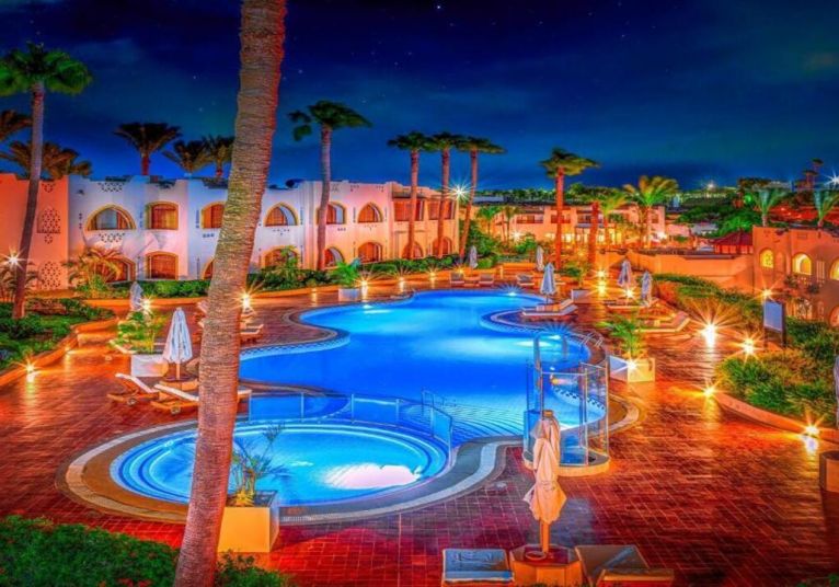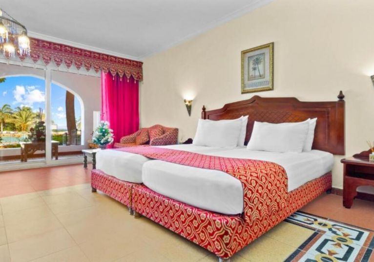 Domina Coral Bey Resort 5* Това е най-големия комплекс на територията на Шарм Ел Шейх с площ над 1000 000 кв.м разпределени в 6 квартала. Предвижването е с колички. Нашите туристи се настаняват в квартал Oazis или Bella Vista в стандартни стаи, като 90 % от тях са с гледка море или басейн . Настаняване на дете или трети възрастен е на разтегателен диван.