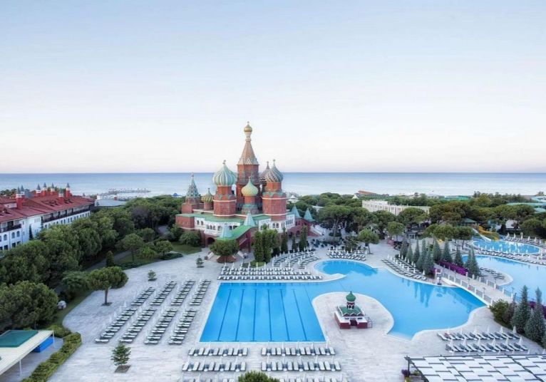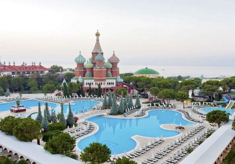 Asteria Kremlin Palace се намира в Кунду, на 12 км от летището в Анталия и на 21 км от центъра на град Анталия. Хотелът е с уникална архитектура наподобяваща руските дворци.