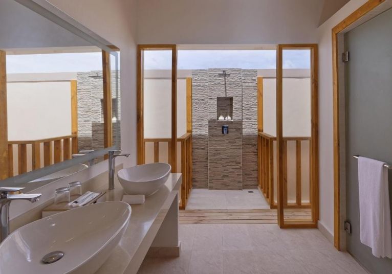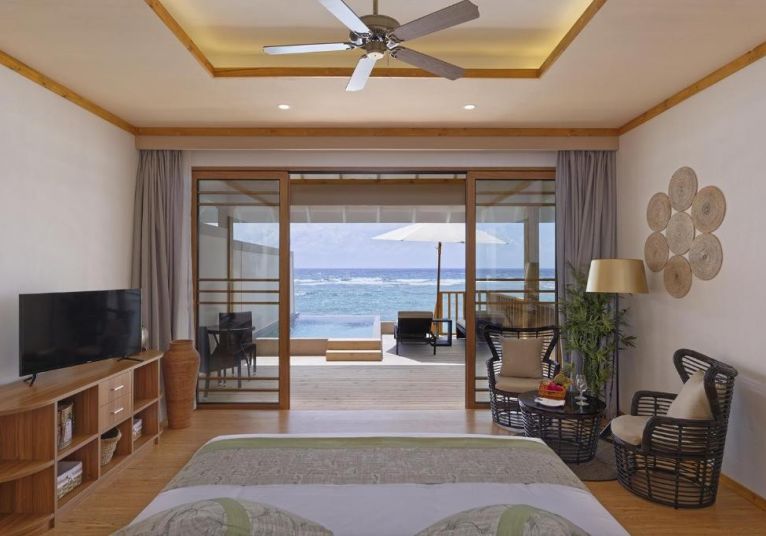 20 Water Villas, разположени над водата, предлагат директен достъп до лагуната чрез стълби и собствена естествена басейн.
