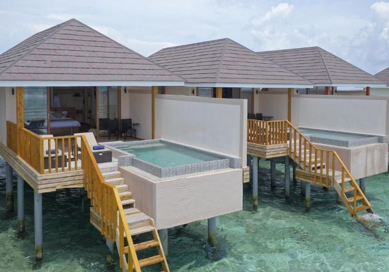 33 Deluxe Water Pool Villas с частен басейн, съчетание на лукс и уединение в сърцето на лагуната.