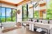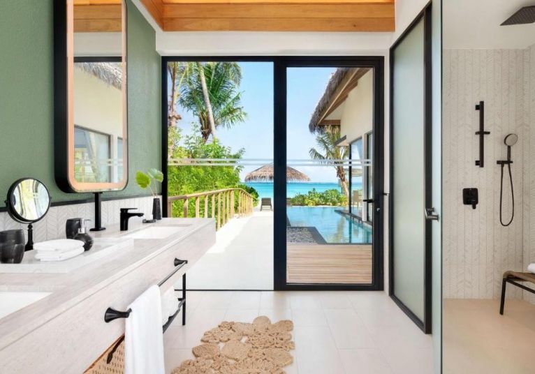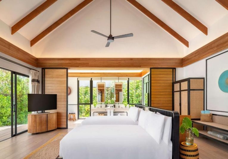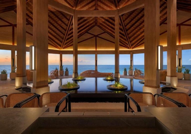 Луксозна резиденция от 4 000 кв.м с 6 спални, частен кей за пристигане, собствен плаж и басейн, две мастър суити с външни басейни и джакузи, развлекателен салон над водата, кино, детска стая, спа, фитнес, сауна, йога павилион и KTV салон с бар и DJ пулт – перфектна за неповторима малдивска ваканция.
