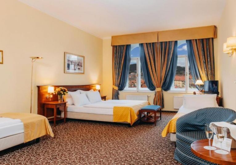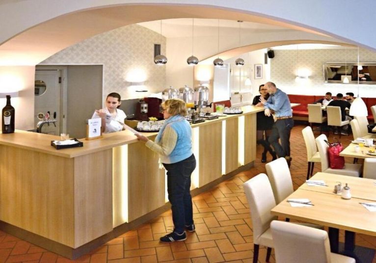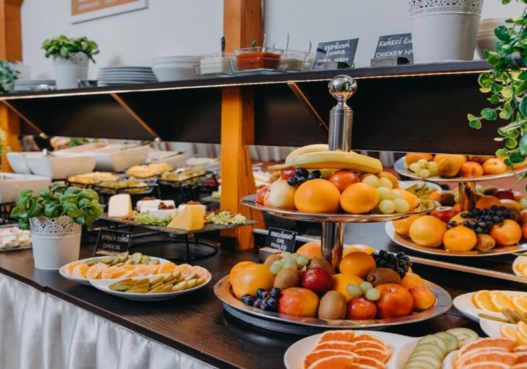 Ресторантът на хотела сервира изобилна закуска на шведска маса всяка сутрин, включваща както топли и студени ястия, така и традиционни чешки печива и напитки.