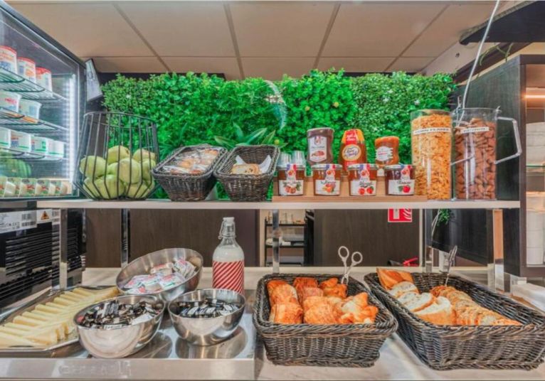 Всяка сутрин се предлага закуска на шведска маса. Хотелът разполага и с автомати за напитки и леки закуски.