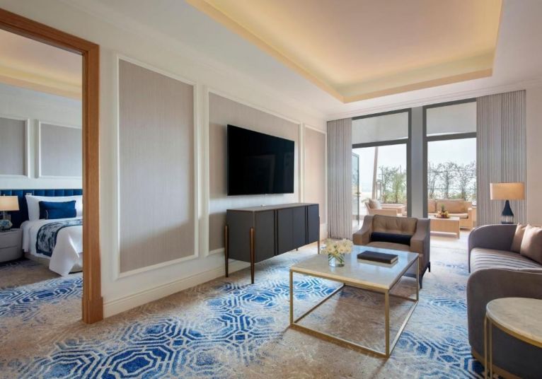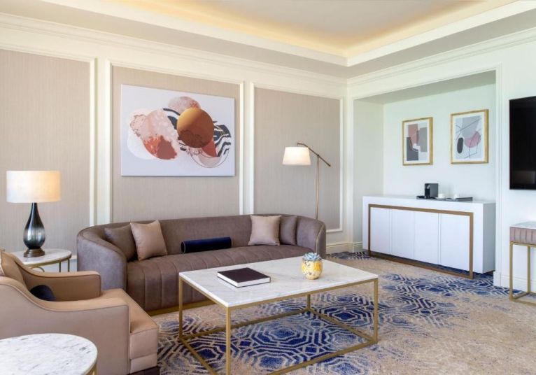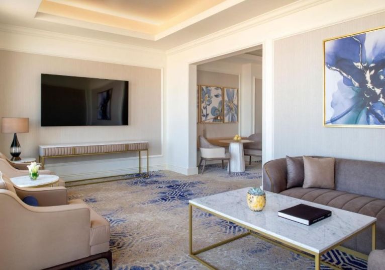 Royal Suite, 3-спален суит, Спалня 1: 1 легло King, Спалня 2: 1 легло King, Спалня 3: 2 двойни легла, 2,5 бани, джакузи за 3 души, минибар, 720 кв.м/7747 кв.фута, дневна/съблекалня, трапезария, отделна трапезария, отделна дневна, кафе/чай машина.