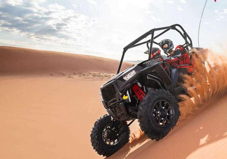 Следва едно незабравимо преживяване с джипове насред пустинята. Шофьорите карат с 80-100 км/ч. през пресечен терен, изкачват се и се спускат по 30 градусови наклони на пясъчни дюни с фин пустинен пясък. Състезават се един с друг и се опитват се да ни накарат да се почувстваме като участници в ралито „Париж-Дакар”.