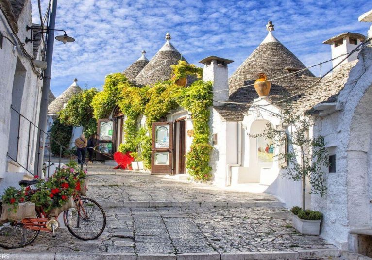 Първата спирка е Алберобело - визитната картичка на Пулия и истинска приказка, пренесена в реалността. Градът очарова с уникалните си трули - малки бели къщички с коносовидни каменни покриви, изградени без спойка - архитектурна хитрост от Средновековието, възникнала като своеобразна „данъчна измама“, позволяваща сградите да бъдат бързо разрушавани при нужда. Днес трулите са под закрилата на ЮНЕСКО и превръщат града в културен и архитектурен феномен.