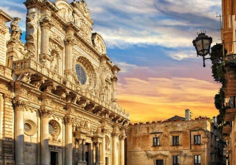 По време на разходката из сърцето на Лече ще се насладите на изключителни архитектурни съкровища: ще се спрете на Катедралния площад, ще преминете покрай изящната църква Санта Ирене от XVI в., и ще затаите дъх пред най-забележителната барокова фасада в Южна Италия - тази на базиликата Санта Кроче. Разходката ще ви отведе и до големия площад Сан Оронцо, където ще видите римския амфитеатър, Колоната на светеца, старото кметство, както и оживените магазинчета, кафенета и джелатерии, които придават колорит на градската сцена.