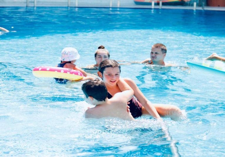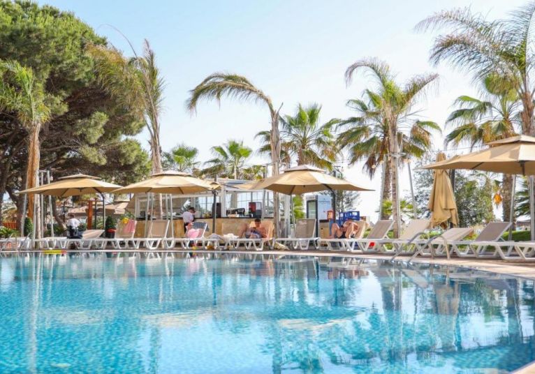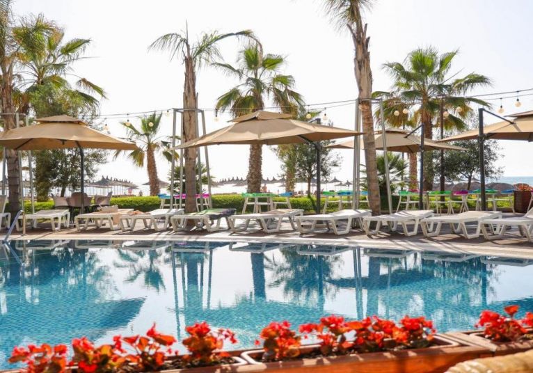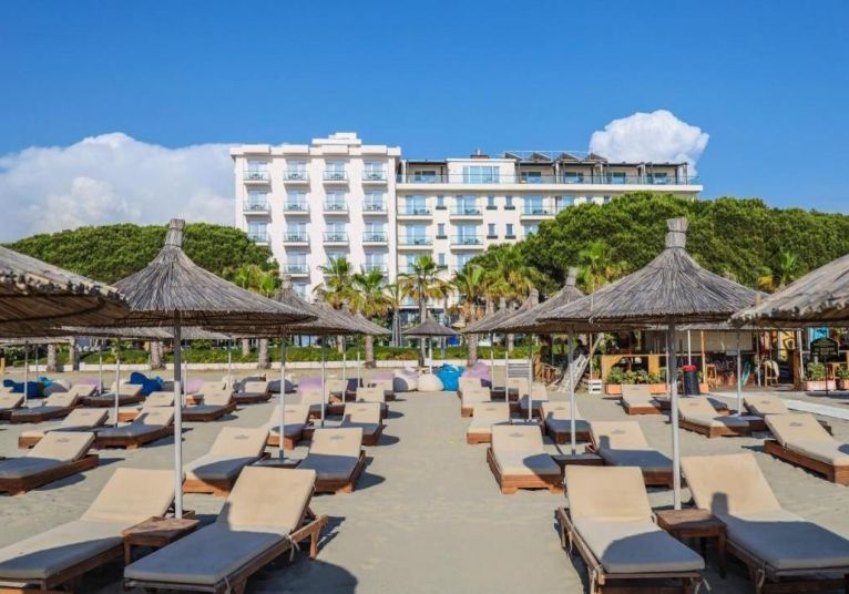 - Ha плaжa нa xoтeлa ca ocигypeни шeзлoнги, дyшoвe и чaдъpи;