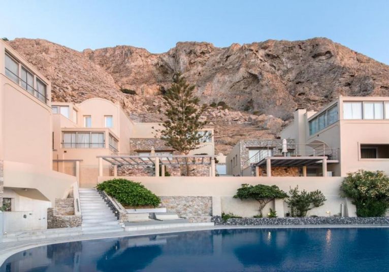 Разположен в сянката на Древна Тира, на тихо място на хълм, предлагащ прекрасна панорамна гледка към Камари и Егейско море,на 400м.от черния плаж Камари и в близост до алея с ресторанти, барове и магазини.