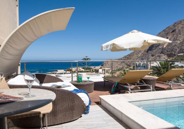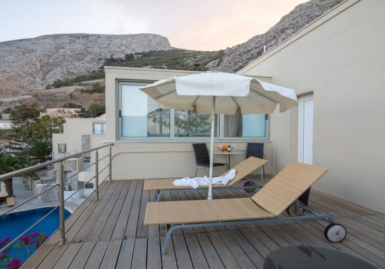 В съответствие с отличителната цикладска архитектура и с минимален декор, джуниър суитите разполагат със самостоятелни балкони с невероятна гледка към Егейско море. Освен това стаите предлагат модерни и удобни удобства.