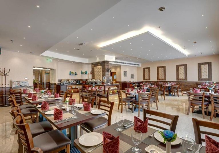 Основният ресторант сервира международна кухня, както на бюфет, така и ала карт. Закуската предлага богато разнообразие от топли и студени предложения. Лоби барът е идеално място за напитки, кафе, коктейли и леки закуски през деня.
