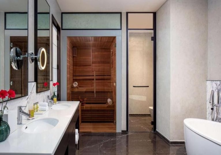 В стаите: Стаята разполага с балкон или тераса, душ или вана, сешоар, климатик, телевизор, ютия и дъска за гладене, хладилник, минибар, сейф, чехли и халати, удобства за приготвяне на чай и кафе, рум сървис (срещу заплащане), ежедневно почистване на стаята, седмична смяна на спалното бельо и ежедневна смяна на кърпи.