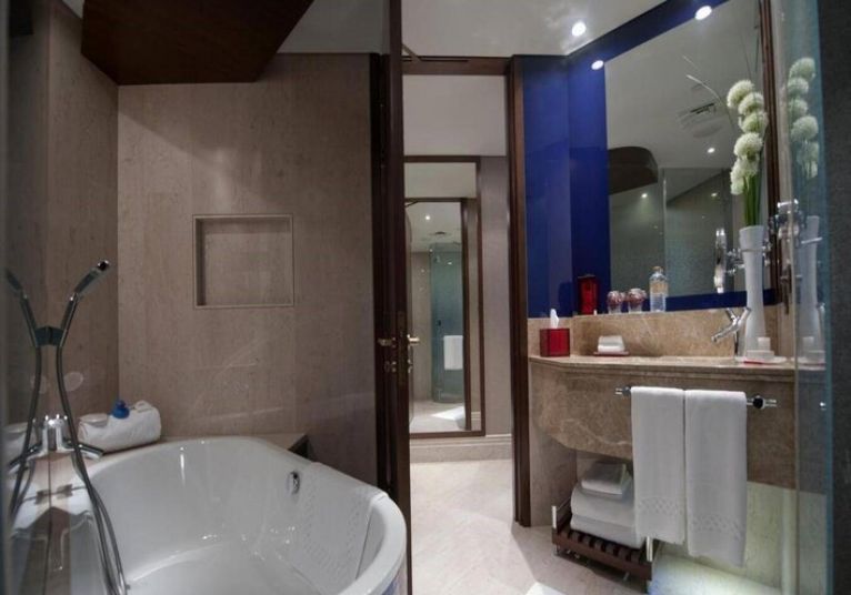 На територията на хотела: Хотелът разполага с четири ресторанта: южноазиатски, кубински, морски дарове и здравословна храна. Има също една банкетна зала, два плувни басейна, AkaruSpa и безплатен Wi-Fi. Има безплатен транспорт до плажа и търговските центрове, включително Dubai Mall. За бизнес събития има 25 конферентни зали.