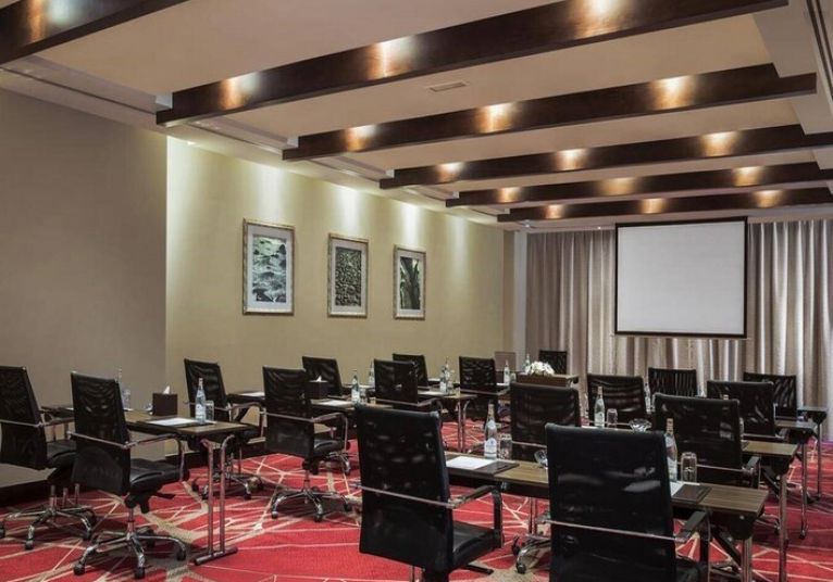 На територията на хотела: Хотелът разполага с три ресторанта, два бара, петнадесет конферентни зали, открит басейн с контролирана температура, конферентна зала за 220 души, четиринадесет заседателни зали, салон за красота, обмяна на валута, пералня, асансьори, пощенски услуги, бизнес център, кафе, безплатен Wi-Fi, паркинг, коли под наем и транспорт до търговски центрове.