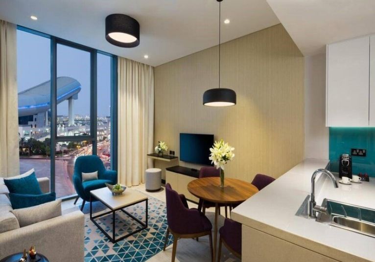 Разположение: Хотелът се намира в района на Ал Барша, на 28 км от международното летище Дубай (DXB), на 54 км от летище Шарджа и на 110 км от летище Абу Даби.