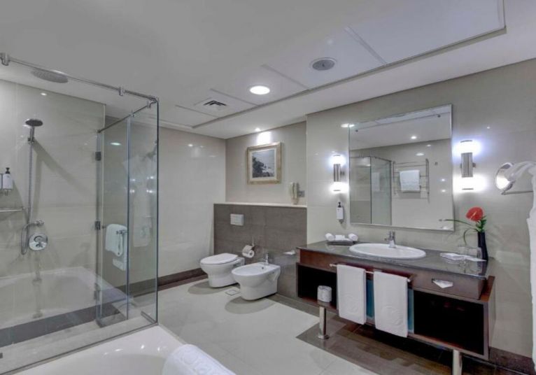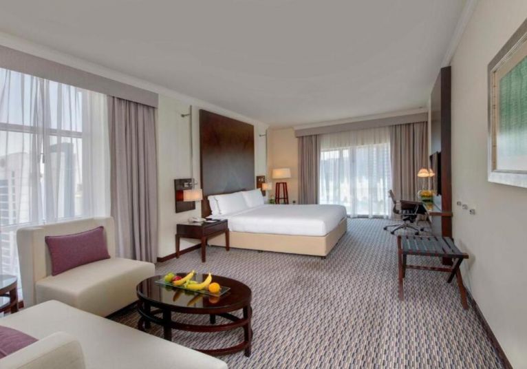 Media Rotana е изискан петзвезден хотел, предлагащ високо ниво на комфорт и обслужване. Разполага с голям открит басейн, просторна тераса, модерен фитнес, спа център, няколко ресторанта и барове, конферентни зали и богата гама услуги. Интериорът е елегантен и подчертава премиум атмосферата на веригата Rotana.