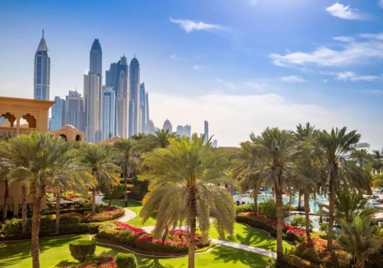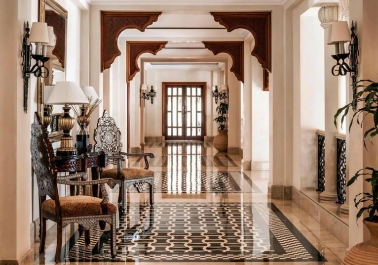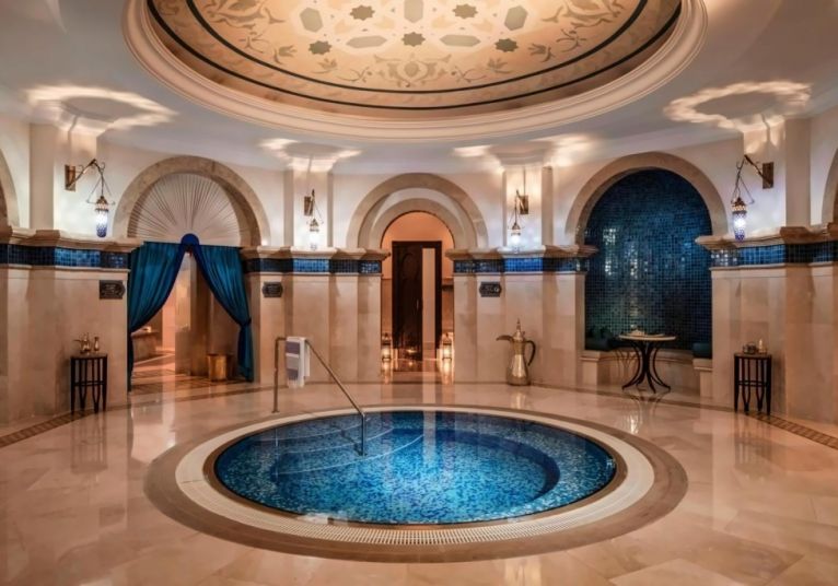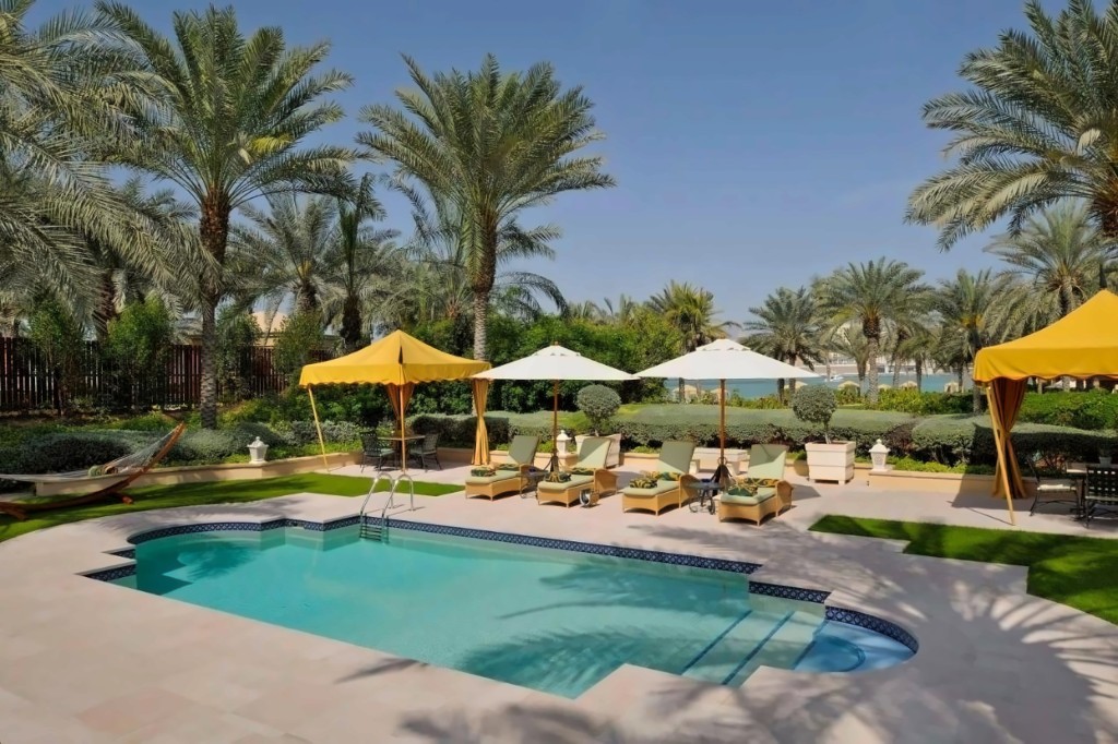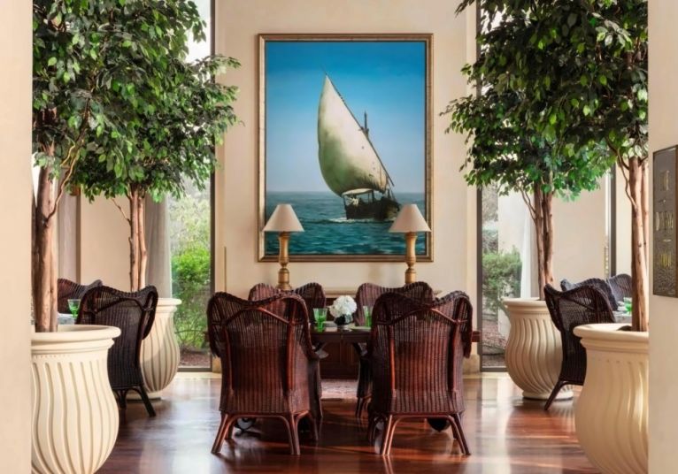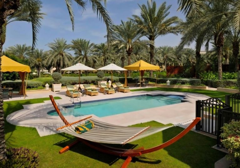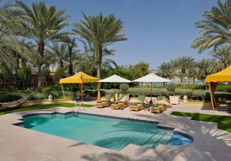 Един от най-добрите хотели за VIP почивка на Джумейра, с голяма зелена територия, където се разхождат пауни; тишина и спокойствие, ненатрапчива арабска луксозна атмосфера в декора, великолепен SPA център, ресторанти, един от най-популярните нощни клубове в Дубай, близки търговски центрове: Mall of the Emirates (15 минути с кола) и Marina Mall (7 минути с кола), депозит при настаняване.