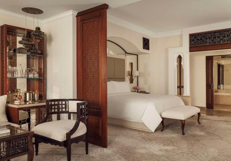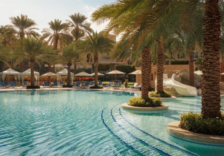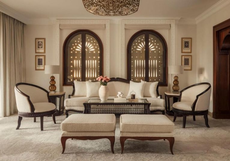 Един от най-добрите хотели за VIP почивка на Джумейра, с голяма зелена територия, където се разхождат пауни, тишина и спокойствие, ненатрапчива арабска луксозна атмосфера в интериора, великолепен СПА център.
