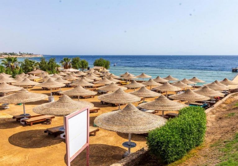 Собствен, пясъчен, с кей; достига се с шатъл бус. Чадъри и шезлонги на плажа и при басейна - безплатно. Плажни кърпи - безплатно.
