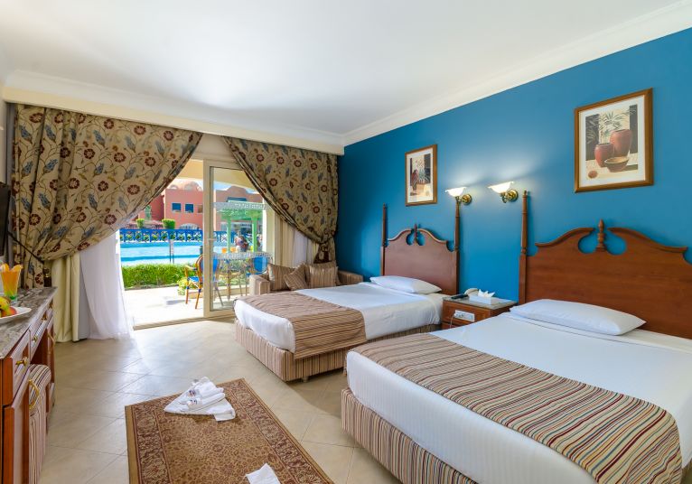 Хотелът разполага с общо 608 стаи, разположени в две 3-етажни сгради - Standard Room (40 м2), Family Room (50 м2), Swim up Room (40 м2), Junior Suite (50 м2), Executite Suite (75 м2), Presidential Suite (120 м2).