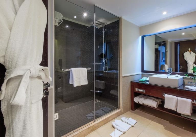 Плаж: Срещу хотела има частен пясъчен плаж със скалист вход към морето. Това е втора линия, но чадърите, шезлонгите и плажните кърпи се предоставят безплатно.
