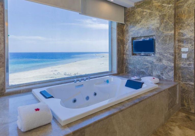 Плаж: Частен пясъчен и скалист плаж, понтон, корали в близост, пясъчен вход към морето, първа брегова линия. Препоръчват се специални обувки. Чадъри, шезлонги, матраци, хавлии – безплатно. Дължината на плажа е 600м.