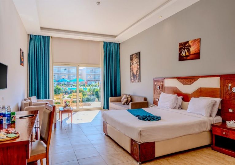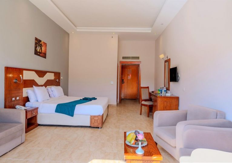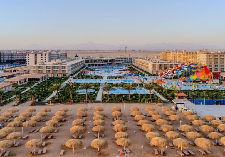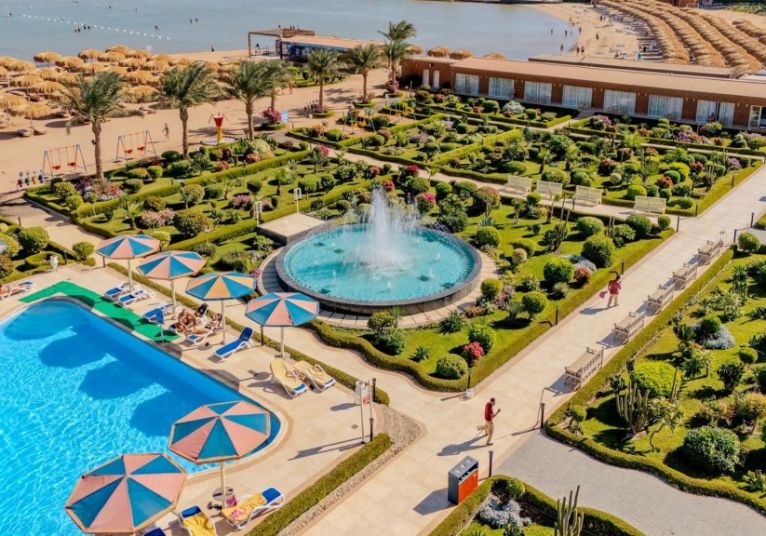 Хотелът се намира на 20 км от летище Хургада, а разстоянието до центъра на града е 17 км. Хотел за бюджетен отдих с аквапарк, разположен на първа линия.
