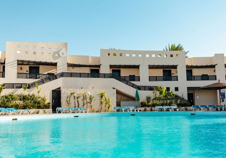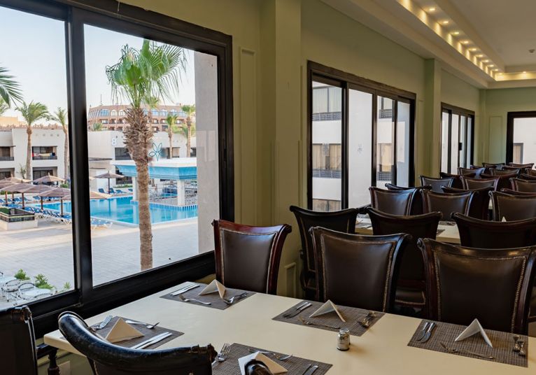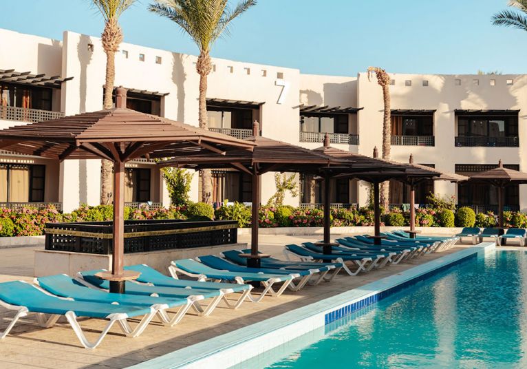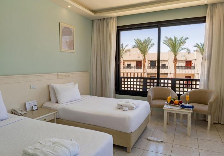 Намира се на 17 км. от летище Хургада, на 23 км. от центъра на Хургада, на брега на морето.