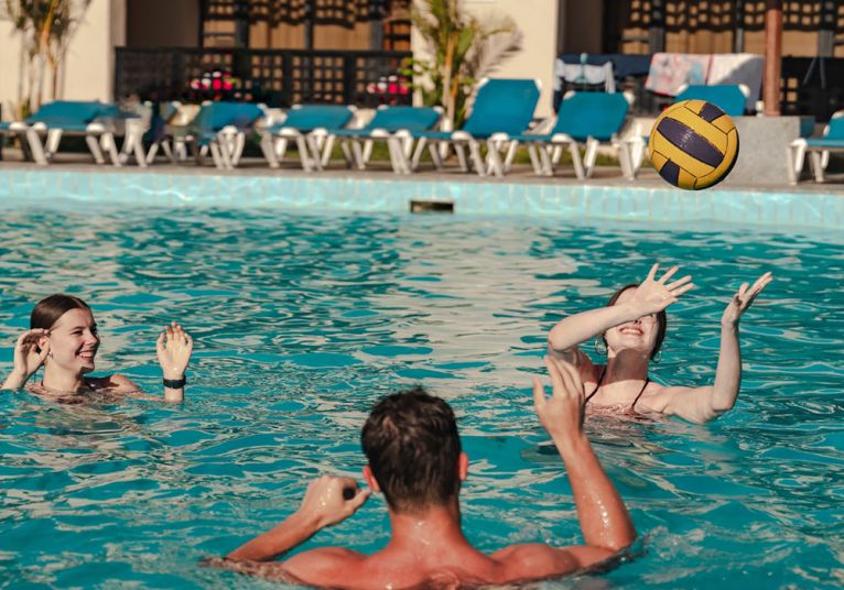 За децата: детски басейн, детска зона в аквапарка, детска площадка, анимация, детегледачка (платено).