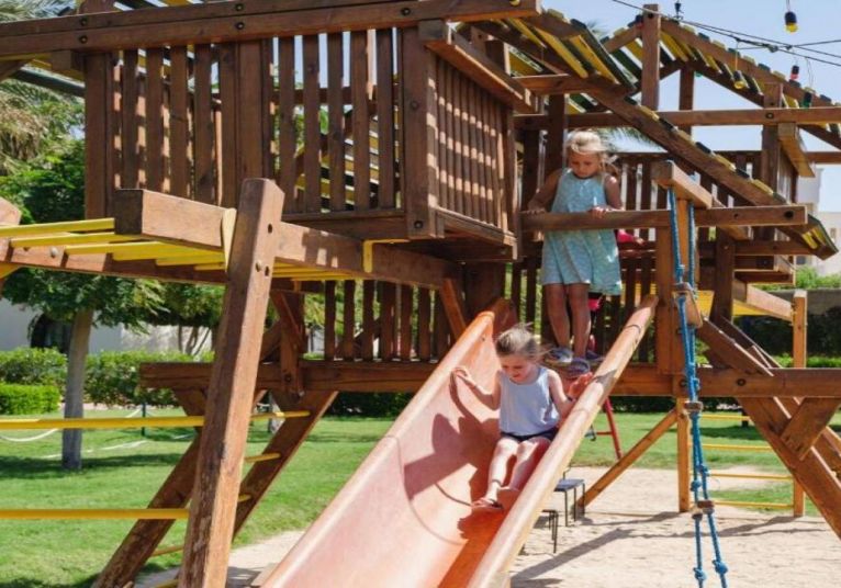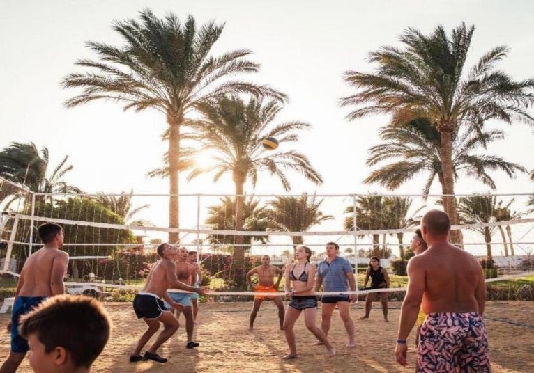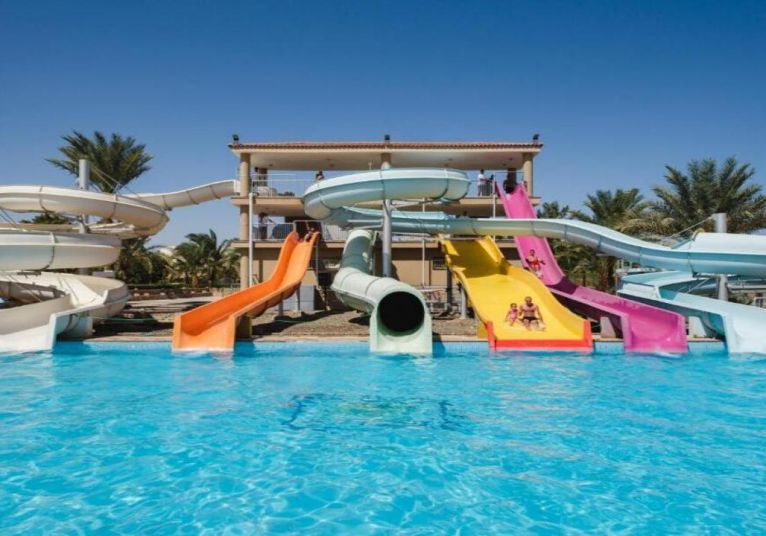 Desert Rose 5* разполага със собствен девствен пясъчен плаж с дължина от 1км, с 40 000 м² природна лагуна със златист пясък. Хотелът предлага на своите клиенти идеална атмосфера за забавления или просто да се насладят на прекрасния ненадминат климат на Червено море. Хотелът разполага с 4 плувни басейна, 1 с олимпийски размери, голям плувен басейн с палуби за слънчеви бани и бар край него, отопляем семеен плувен басейн и детски плувен басейн, специализиран за бебета и малки деца със собствен мини душ и мини столове. Като допълнение Аквапаркът предлага още и 6 водни пързалки.