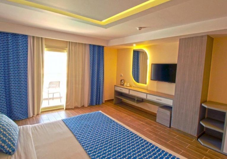 Приблизителна площ на стаята - около 28-32 кв.м. Разполага с телефон, сателитна телевизия, сешоар, сейф, мини бар - срещу допълнително заплащане, електрическа кана с чай и кафе, климатик, баня с тоалетна, балкон или тераса.