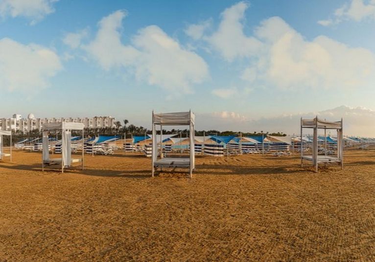 Собствен пясъчен плаж със залив и 3 плувни басейна, включително 1 за деца с чадъри, шезлонги с матраци, плажни огради за защита от вятъра, обслужване от бара, спасители на басейна и на плажа, кърпи за плажа и басейна, табели около басейна;