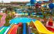 Има 6 кули с 23 водни пързалки, големи интерактивни водни фонтани, аква кула, бавна река и басейн с вълни.
