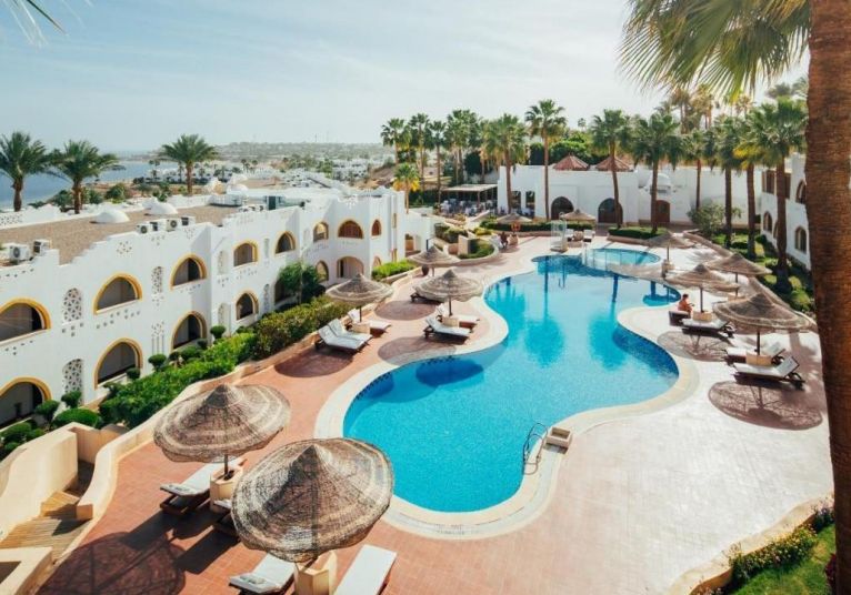 Domina Coral Bey Resort 5* Това е най-големия комплекс на територията на Шарм Ел Шейх с площ над 1000 000 кв.м разпределени в 6 квартала. Предвижването е с колички. Нашите туристи се настаняват в квартал Oazis или Bella Vista в стандартни стаи, като 90 % от тях са с гледка море или басейн . Настаняване на дете или трети възрастен е на разтегателен диван.