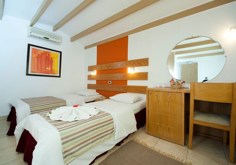 Всички стаи са оборудвани с климатик, телевизор, телефон, баня с душ/вана, сешоар, минибар (платен), сейф, балкон. Почистване на стаите– всеки ден.