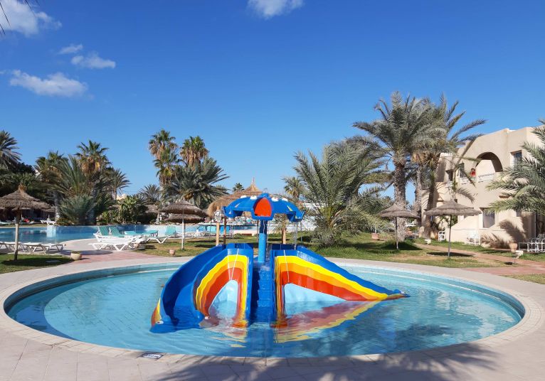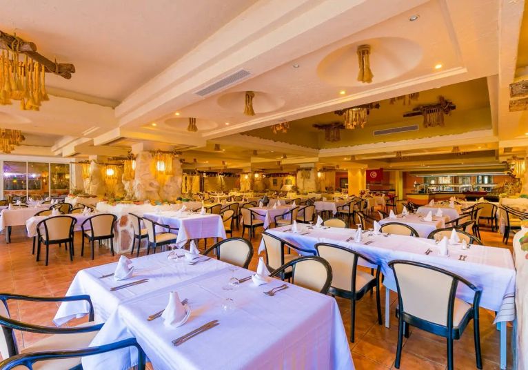 Основен ресторант, 2 а-ла-карт ресторанта (тунизийски и марокански – срещу заплащане/с предварителна резервация, съгласно концепцията на хотела/1 безплатно посещение на 1 от ресторантите при минимум 7 нощувки), 3 бара, мавританско кафене (срещу заплащане), открит басейн, 3 водни пързалки, закрит басейн (от 01.11 до 31.03), закрит басейн с морска вода в Таласо центъра (срещу заплащане), 2 конферентни зали и заседателна зала, магазин, обмяна на валута, денонощна рецепция, Таласо център.