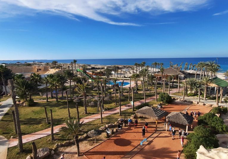Намира се на 34 км от летище Джерба, на 12 км от центъра на Мидун, на 19 км от столицата на о-в Джерба Хумт Сук, на 3 км от голф клуб Джерба, на брега на морето.