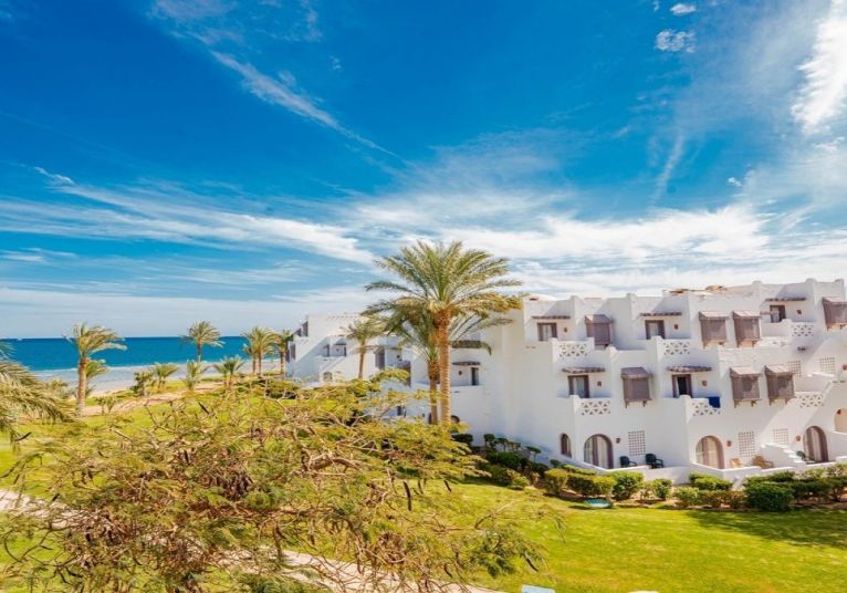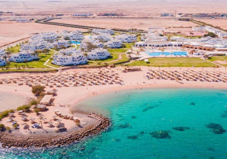 Намира се на 8 км. от летище Хургада, на 12 км. от центъра на Хургада, на брега на морето.