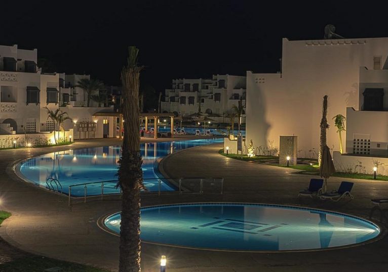 Намира се на 8 км. от летище Хургада, на 12 км. от центъра на Хургада, на брега на морето.