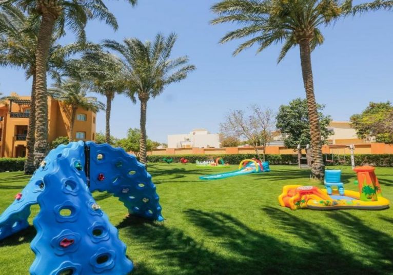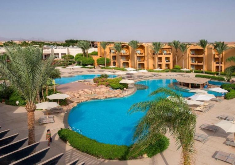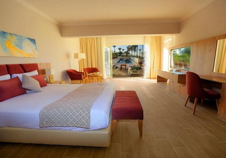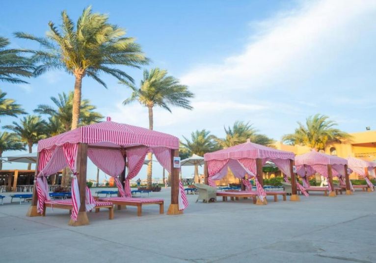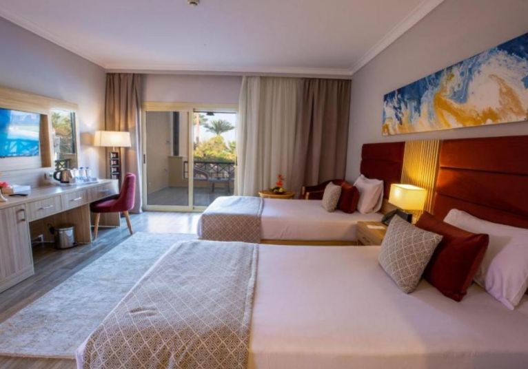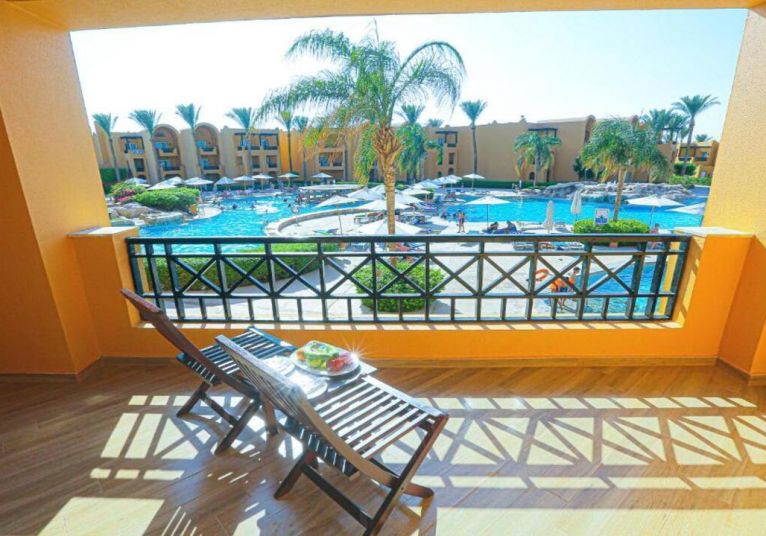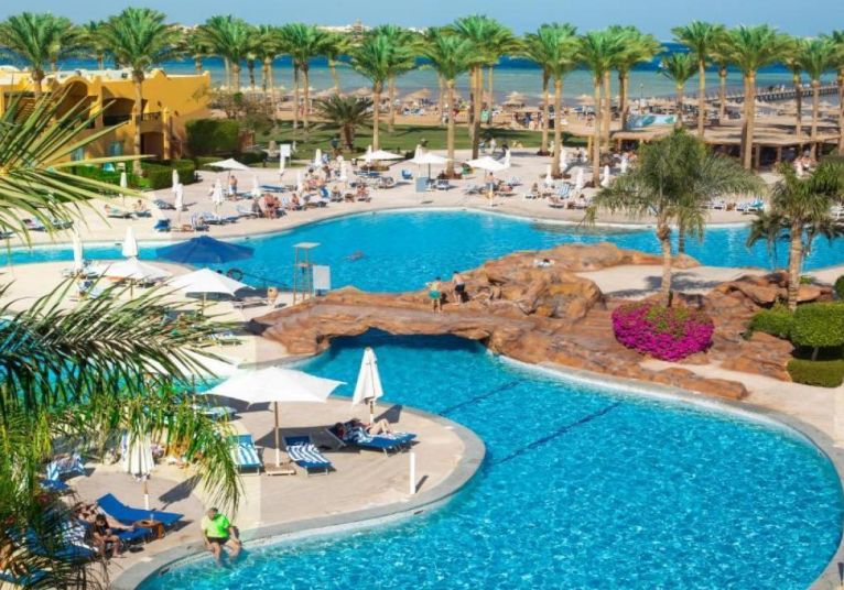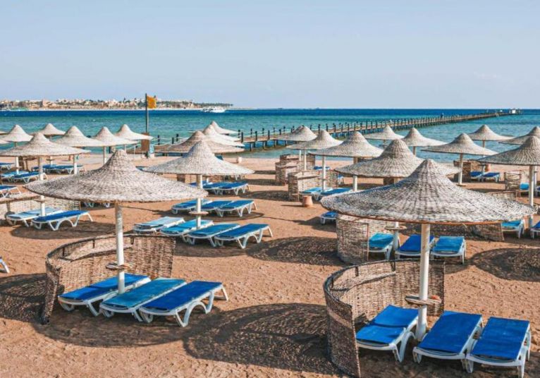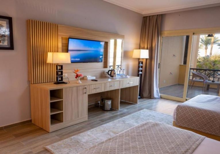 Stella Beach Resort се намира в красивия район Макади Бей, южно от Хургада. Разположен е директно на първа линия до частен пясъчен плаж с плитки води и коралови рифове – перфектен за плуване и шнорхелинг. Международното летище на Хургада е на около 35 км, а центърът на града – на около 40 км. Районът е спокоен, с луксозни курорти и отлични условия за почивка край морето.