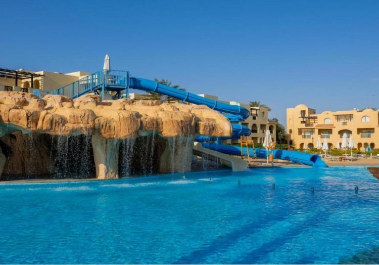 Stella Gardens Resort and Spa се намира в живописния и спокоен район Макади Бей, на около 35 км южно от международното летище в Хургада и на около 40 км от центъра на града. Хотелът е част от големия комплекс Stella Di Mare и предлага достъп до частен плаж чрез вътрешен път или шатъл. Разположението му осигурява тишина, спокойствие и отлична възможност за пълноценна почивка в близост до морето и рифовете на Червено море.