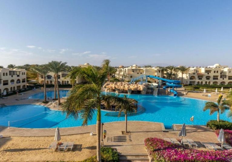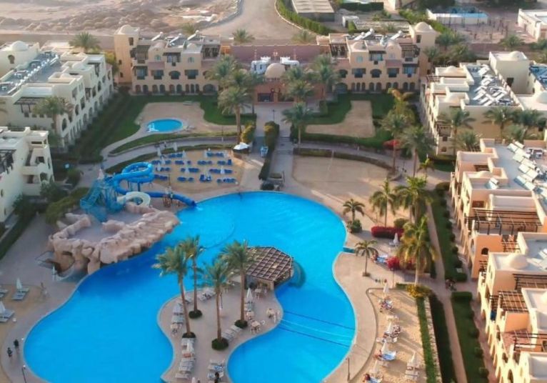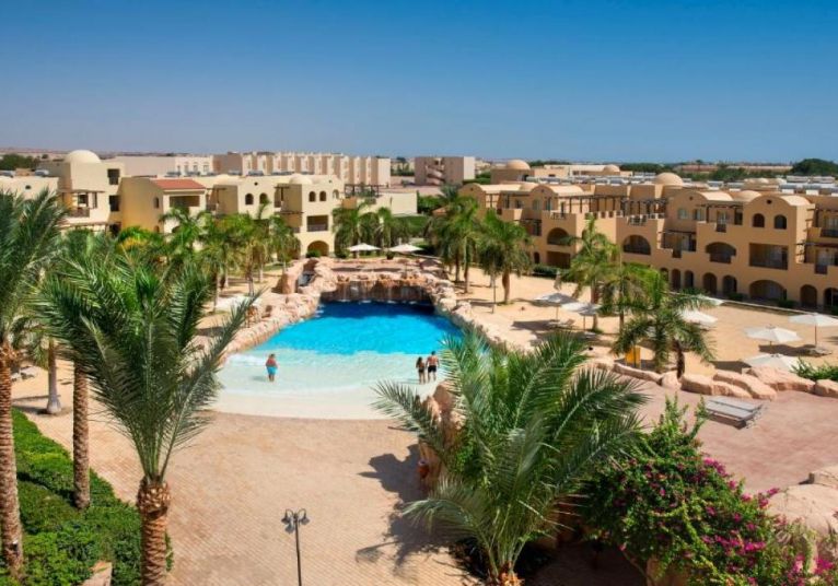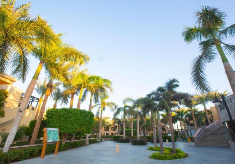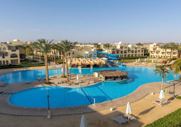 Stella Gardens Resort and Spa се намира в живописния и спокоен район Макади Бей, на около 35 км южно от международното летище в Хургада и на около 40 км от центъра на града. Хотелът е част от големия комплекс Stella Di Mare и предлага достъп до частен плаж чрез вътрешен път или шатъл. Разположението му осигурява тишина, спокойствие и отлична възможност за пълноценна почивка в близост до морето и рифовете на Червено море.