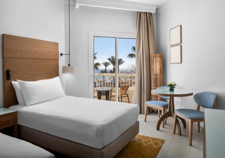 Разположение: Разположен на фона на зашеметяващия остров Тиран в залива Шаркс, DoubleTree by Hilton Sharm El Sheikh е първият хотел DoubleTree в Египет, предлагащ незабравимо преживяване на Червено море, на 10 минути от летището (около 5 км), на 5 минути пеша от площад Сохо и на 11 км от Наама бей, на брега на морето.